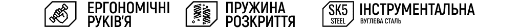 - Особливості: подовжені ручки для зменшення навантаження, ергономічний дизайн, плавний хід лез